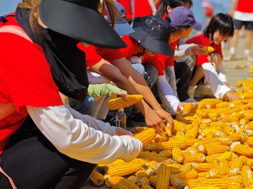清扫完社区,便帮助农民掰玉米,志愿者们将割倒在田地里的整株玉米外皮剥开并掰下装袋,秸秆收拢打捆,发扬了不怕脏、不怕苦、不怕累的精神,以实际行动践行着“我为群众办实事”的理念和对家园的热爱与责任。