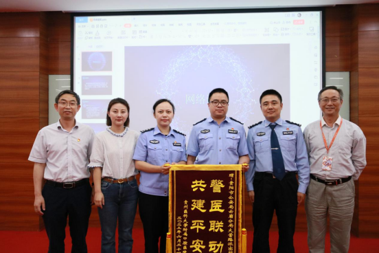 随后,党委副书记何雨羲、副院长王永共同为王剑、雷庭方、李安颁发“警医联动,共建平安”荣誉锦旗。