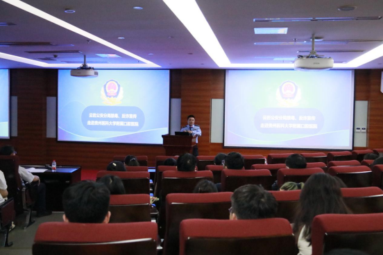 讲座上,王剑对常见的毒品类型、危害和防范知识作了深入阐述,进一步提高大家识毒、防毒、拒毒意识。王剑还介绍了网络谣言的定义、危害及有关法律法规,向大家发出“不造谣,不传谣,不信谣”倡议,自觉构建清朗网络空间。雷廷方运用典型案例,剖析了“刷单返现”、“冒充电商客服”、“扫码点赞”等套路,揭示诈骗分子的诈骗手段,引导大家正确辨别,防止受骗。