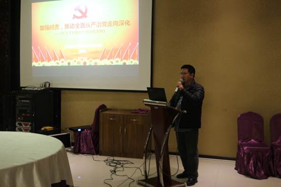 学术交流中心(品怡酒楼)二楼会议室举办。院党委委员、纪检委员段晓峰作题为“加强问责、推动全面从严治党走向深化,学习《中国共产党问责条例》”的专题讲座,讲座由院党委书记张军梅主持。