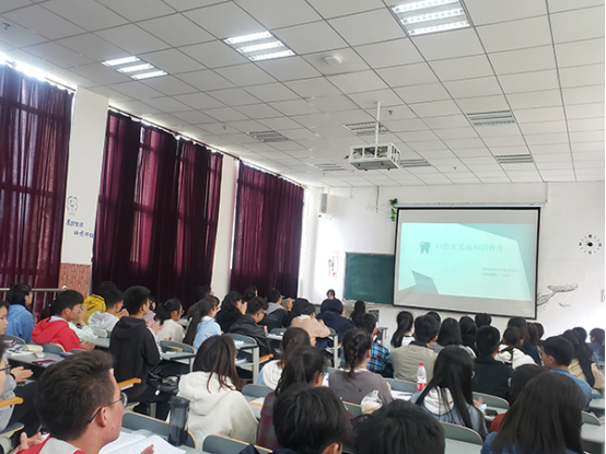 讲座中,彭颖医生用生动的例子和简明扼要的语言向同学们普及了口腔常见病,如口腔黏膜疾病、龋齿等,并结合临床经验,对口腔常见疾病的预防和治疗做了简单的介绍。彭颖医生指出,生活中有很多人还未意识到口腔疾病在预防上的重要性,导致口腔疾病发现晚、治疗晚,且可能伴有并发症。她强调,任何疾病都要注重预防,防患于未然,口腔疾病更是如此,希望我们的口腔医学生们能向身边的人普及口腔常见病的有关知识,提高他们的口腔保健意识,积极应对口腔方面的问题。