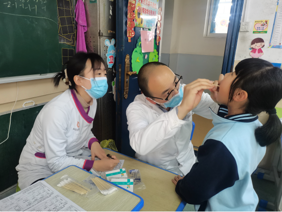 讲座结束后,义诊团队分组为700余名学生进行了详细的口腔健康检查,针对各自的口腔健康问题建立专属档案并提出治疗意见。