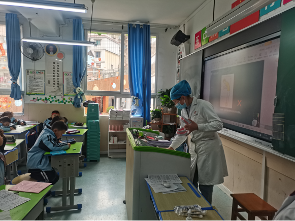 科普进校园,护齿从小抓。活动现场,医护人员开展了口腔健康知识讲座,让大家了解牙齿的结构、龋齿的形成和预防龋齿的方法等口腔健康知识,并结合牙齿模型,指导小学生们掌握正确的刷牙方式,纠正不正确的口腔卫生习惯,养成正确的口腔保健意识。