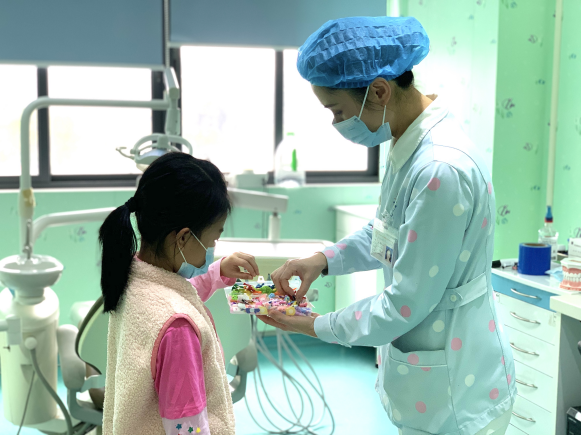 实施窝沟封闭前,医生为适龄儿童检查了口腔,并详细讲解了儿童刷牙的正确方法及易存在的口腔问题等。