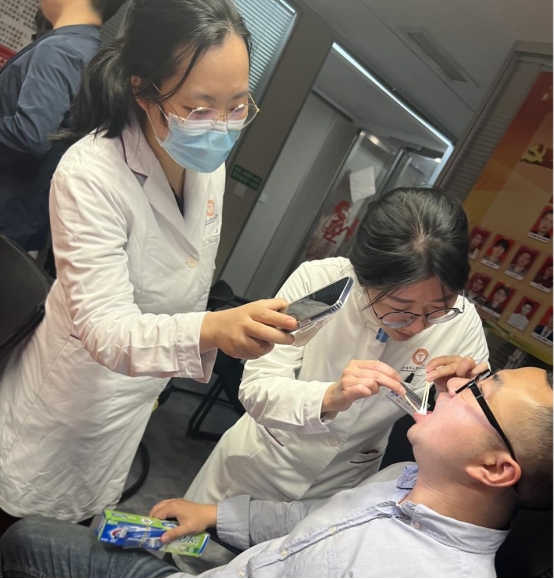 随后,医师靳大力开展了健康科普讲座,介绍了牙周疾病的发生发展过程,并强调了正确刷牙及定期洁牙的重要性。