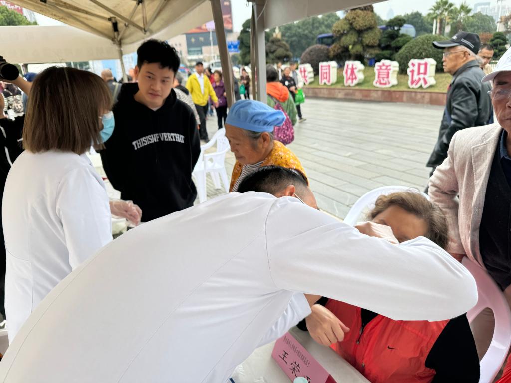 10月11日,口腔预防科联合教工七支部和教工十一支部在云岩区筑城广场参与省卫生健康委、省民政厅、省中医药局组织的2024年“敬老月”老年健康教育活动。