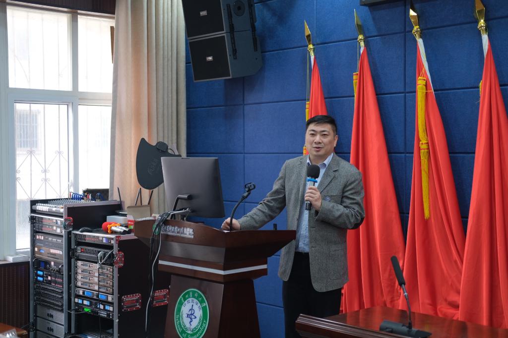 (后文简称贵医口腔)在学术报告厅开展以“矢志创新发展,建设科技强国”为主题的贵州省第一期口腔专家讲科普学习班。贵医口腔党委副书记、院长马洪,贵州省健康管理师协会会长张科、副会长田斌出席会议,省内外多名医护人员及健康从业者参加会议。贵医口腔预防管理科主任陈仕红主持会议。