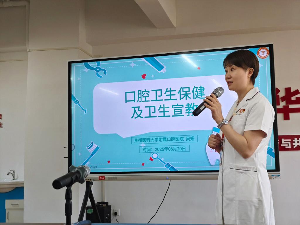 党委委员、副院长唐正龙带领口腔颌面外科、正畸一科、护理部、预防管理科及教工第八党支部走进贵州民族大学音乐舞蹈学院开展“健康颌面,乐舞青春”牙颌面科普义诊活动。