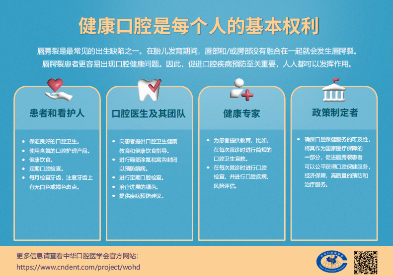 2024年“世界口腔健康日”核心信息卡——促进唇腭裂患者的口腔健康和口腔疾病预防