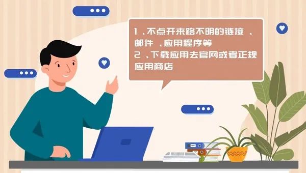 其次,是软件层面的防护。为了办公电脑远离病毒,请不要随意点开来路不明的链接、邮件等;如果要安装应用程序,请在官网进行下载,避免使用“破解版”“绿色版”等应用。