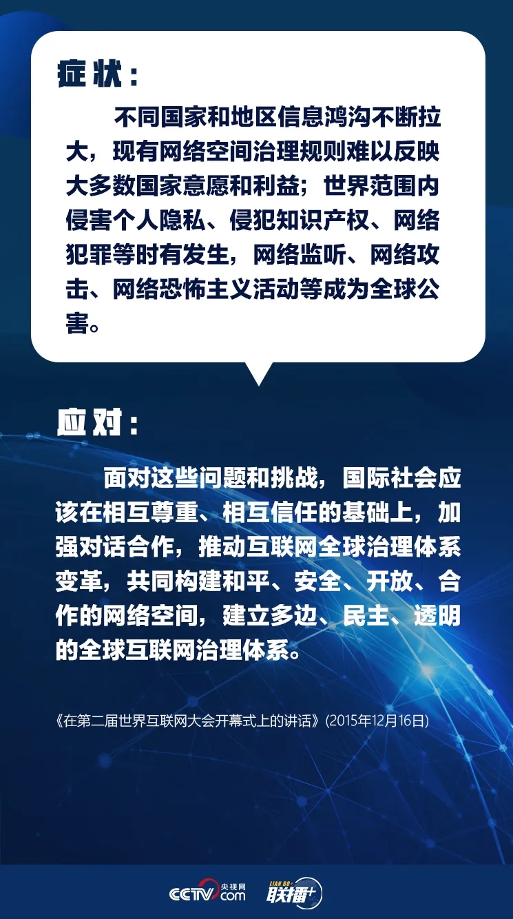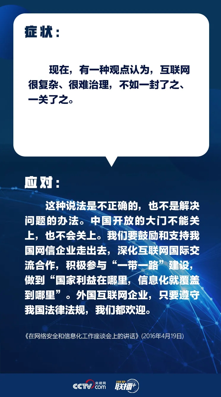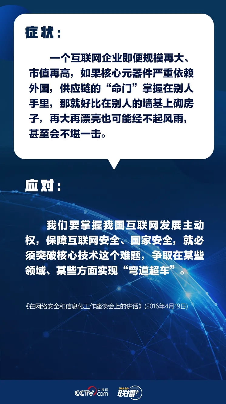 “互联网核心技术是我们最大的‘命门’,核心技术受制于人是我们最大的隐患。”“网络空间乌烟瘴气、生态恶化,不符合人民利益。”......