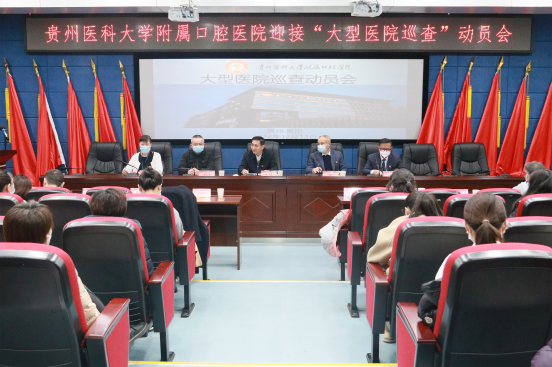 12月13日上午,口腔医院在行政楼学术报告厅召开了“贵州省大型医院巡查动员会”。巡查组一行8人,贵州医科大学党委委员、副校长田晓滨,口腔医院全体班子成员出席会议。口腔医院党委书记张军梅主持会议。口腔医院各党群、行政职能部门负责人及各临床、医技科室负责人和护士长参加会议。