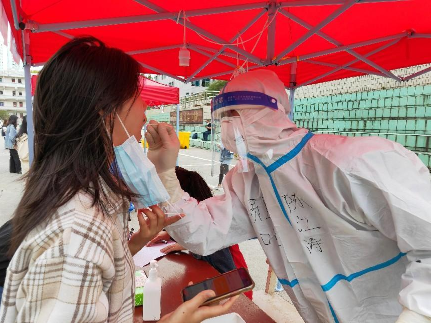 从9月2日至今,口腔医学院及医院共派出50多名护理志愿者核酸检测,每天采集样本数约为2600余人次,共完成了核酸检测54803人次。