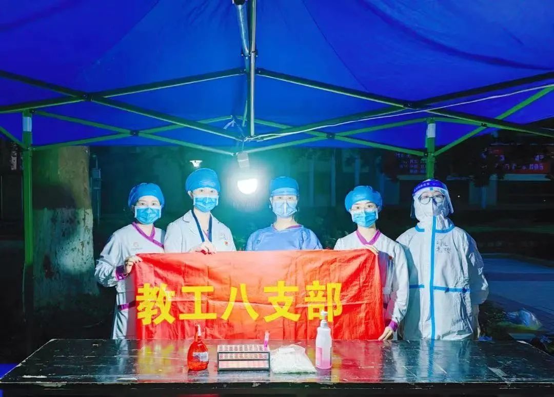 、附属口腔医院的党员干部们迎难而上,克服自身医疗保障压力,组建疫情防控医护队伍及志愿者队伍,主动承担起北校区及商专住宿点的师生教职员工的核酸采集工作,用实际行动打牢北校区安全防线基础。