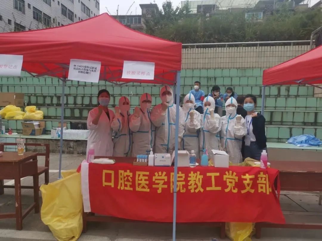 、附属口腔医院接到为学校北校区、商专住宿点全体本科生、研究生、住培生、实习生核酸采集的工作任务,多名教职工及学生主动请缨,申请当志愿者,承担抗疫一线核酸检测、秩序管理、医用垃圾收集等工作。