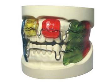 2. 早期阻断性矫治:对已出现的早期畸形及造成畸形的因素,以及不良习惯等进行矫治器阻断治疗及肌功能调整训练治疗。