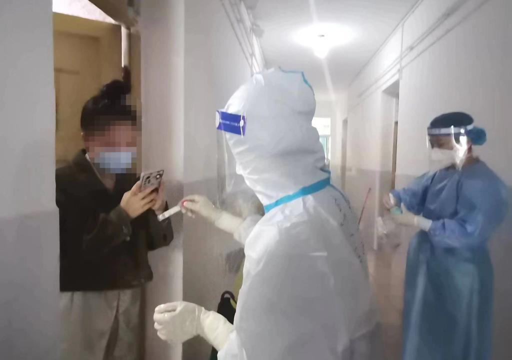 核酸采集队上门为学生采集核酸