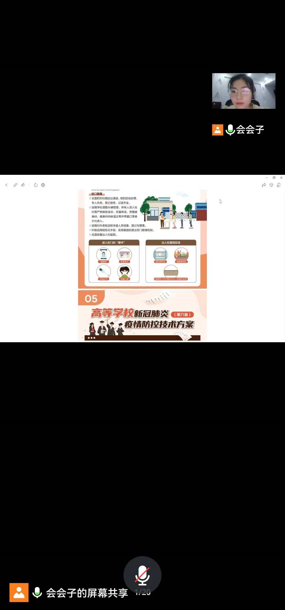 各班辅导员首先传达了习近平总书记关于疫情防控的重要讲话精神,解读了《新冠肺炎第九版防控方案操作手册》以及《高等学校新冠肺炎疫情防控技术方案(第六版)》,并传达学校疫情防控工作安排和要求,对重要内容做深入说明。强调疫情防控形势严峻,同学们要提高思想觉悟,增强个人防控意识,要严格遵守学校疫情防控各项工作要求,按时进行核酸检测,认真填报今日校园上面的每日健康信息数据。指出虽然线下教学不能开展,但同学们要认真上好网课,一方屏幕也能载着梦想启航,希望同学们珍惜时光,不负韶华,认真学习。