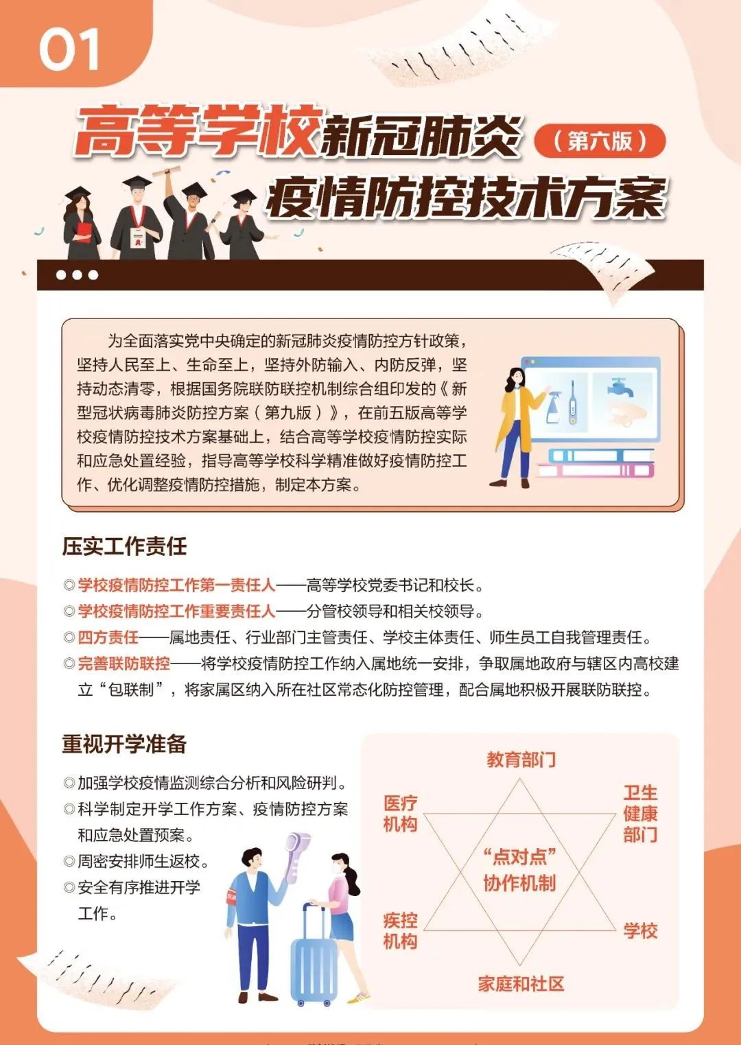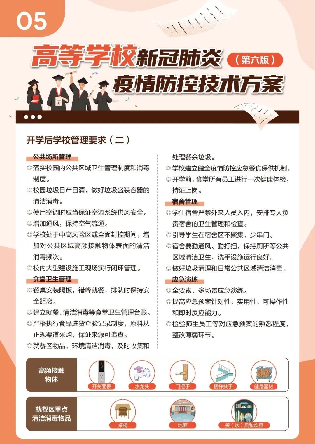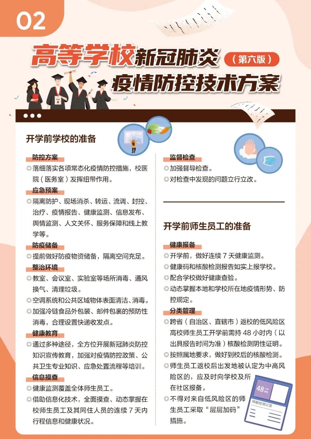 近日,教育部、国家疾控局组织制定了《高等学校新冠肺炎疫情防控技术方案(第六版)》,以进一步指导高等学校做好新冠肺炎疫情防控工作,压实校园防控各方主体责任,有序落实常态化防控与应急处置措施。新版技术方案重点都有哪些些要求?一起来看!
