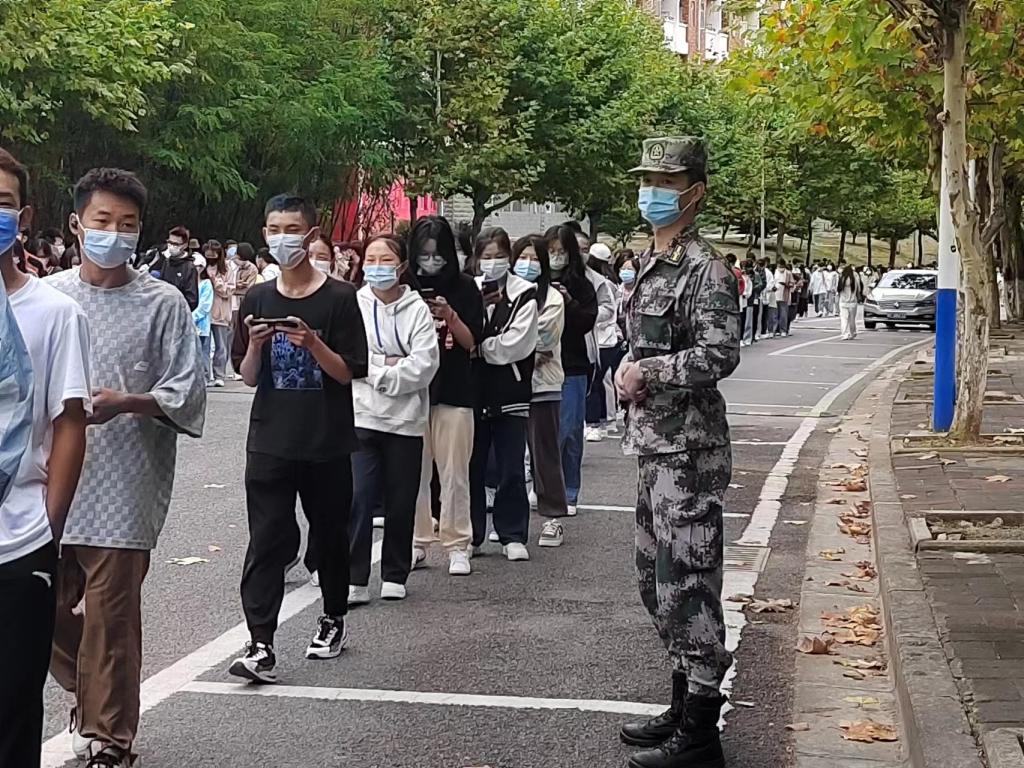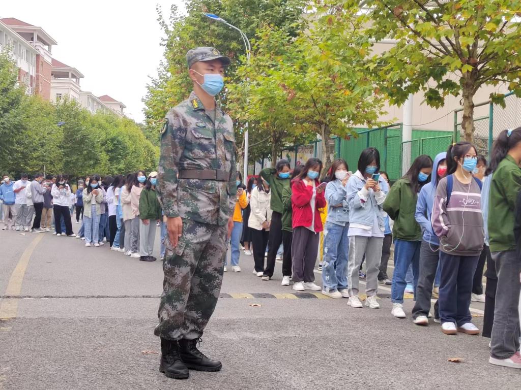 “明早八点,学校设立了几处核酸采集点,现场需要大家去维持秩序”。在得知学校要进行核酸检测时,他们身着绿军装,自告奋勇报名前去维持现场秩序,成为检测现场一道靓丽的风景线。他们提醒同学人与人之间间隔两米,佩戴好口罩,做完核酸后迅速返回宿舍,不在检测现场逗留。在他们的有序指挥之下,现场秩序良好,进一步防止了疫情的扩散。是他们不畏艰险,奋力冲锋在一线,他们那句“你让开,让我来”,展现在贵医的校园之中。