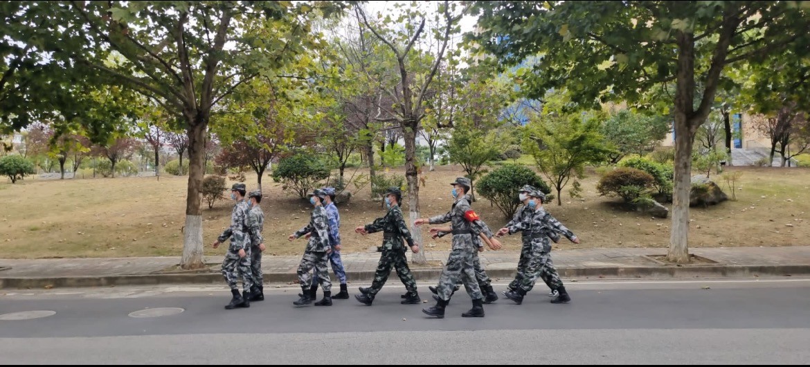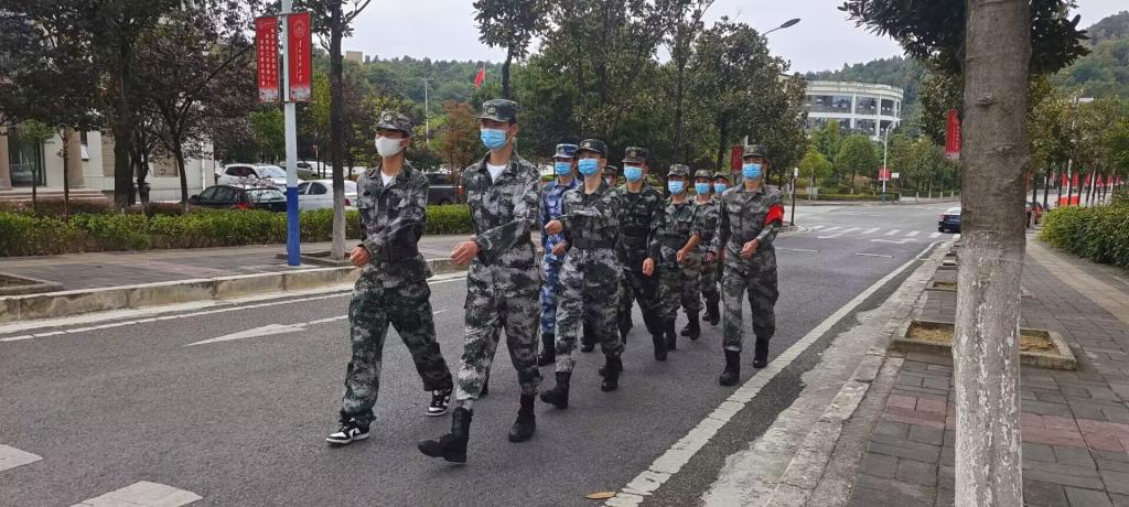 “齐步走,一二一.......立定”;“同学,现在正处于疫情防控阶段,请佩戴好口罩,返回宿舍”。那些绿色的迷彩,在贵医的校园中划出了一道道靓丽风景线,每当他们走过宿舍的同学都拿起手机记录下这道风景,这就是贵医防疫“巡逻小分队”。他们走在校园就是一道不可多得的风景,他们和“大白”一样走在防疫前线,守卫着贵医,他们步伐铿锵有力,暗示着防疫必胜的决心。