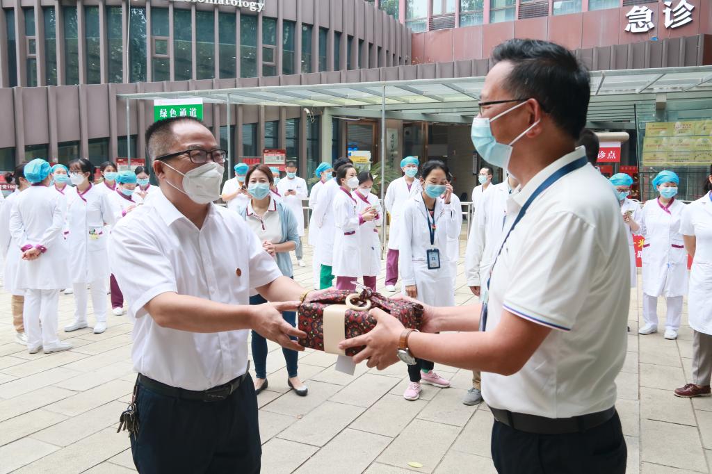 (后文简称“口腔医院”),走访慰问坚守在疫情防控一线的职工。口腔医院党委书记张军梅、院长马洪、副院长王永与医院在岗职工共同接受慰问。