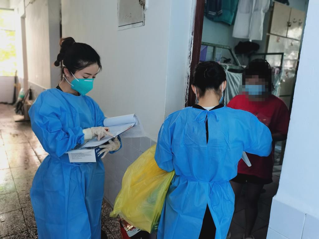 教工第二党支部组织委员、院团委段姗姗,是个热心居民,她主动报名成为防疫志愿者就地参与到社区核酸检测登记工作中,每天上门给小区业主做信息登记,并帮忙组织业主有序下楼做核酸。段姗姗说道:“能够在疫情防控的关键时刻贡献自己的一份薄力,作为一名党员干部,我感到很光荣!