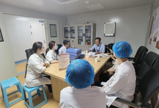首先巡查组参观了各基地诊疗区,了解基地现有硬件设施情况,王永抽查了学生书写的门诊病历并即时提出整改意见。而后通过座谈,各基地负责人简要介绍了基地建设情况、学生实习情况及教师带教等生产实习相关情况,并对整体学生生产实习情况进行交流沟通,听取基地师生意见。之后,胡睿对同质化教学书面资料进行检查和反馈,针对各基地同质化教学管理目前存在问题提出意见建议。