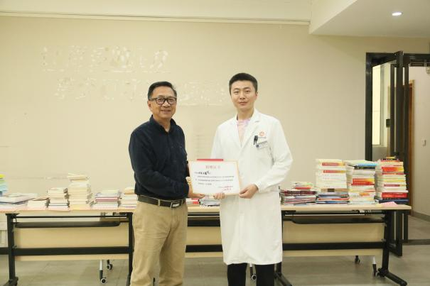 为弘扬与赞美捐赠人的奉献精神及知识共享精神,图书室还邀请捐赠人为其捐赠的书籍粘贴标签。揭牌仪式后,图书室正式向全院教职医护员工生开放!